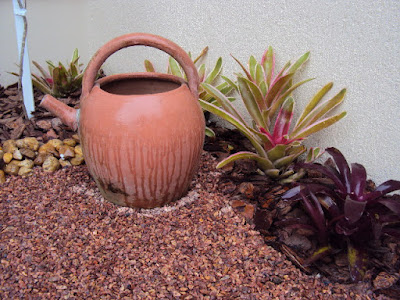 Adorei o cantinho que tem as bromélias e o regador de barro...
