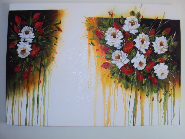 1-Colocaria o quadro com mais vermelho ( o da primeira foto) e abaixaria a altura dele na parede