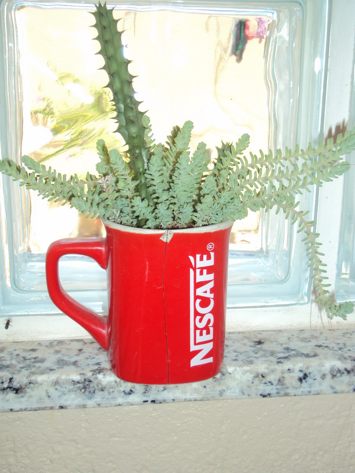 suculentas na xícara, aprendi lá no blog da Claudia.