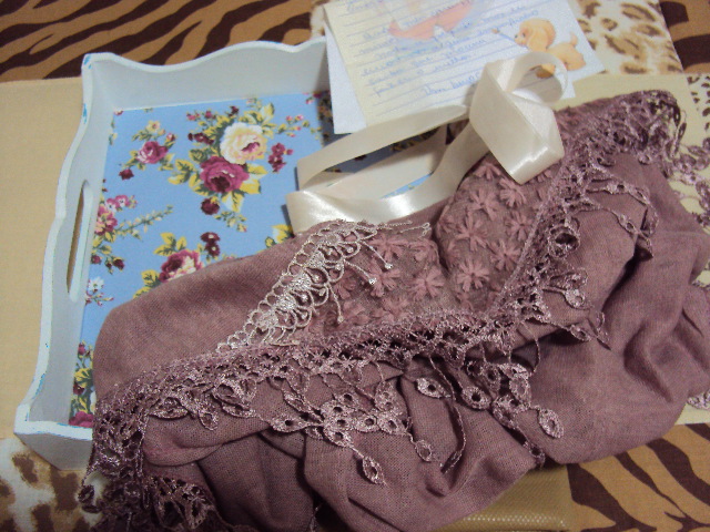 E o que vc ganhou é lindo. Tem um bordado ali que não dá para vê o que é, mas é muito bonito.