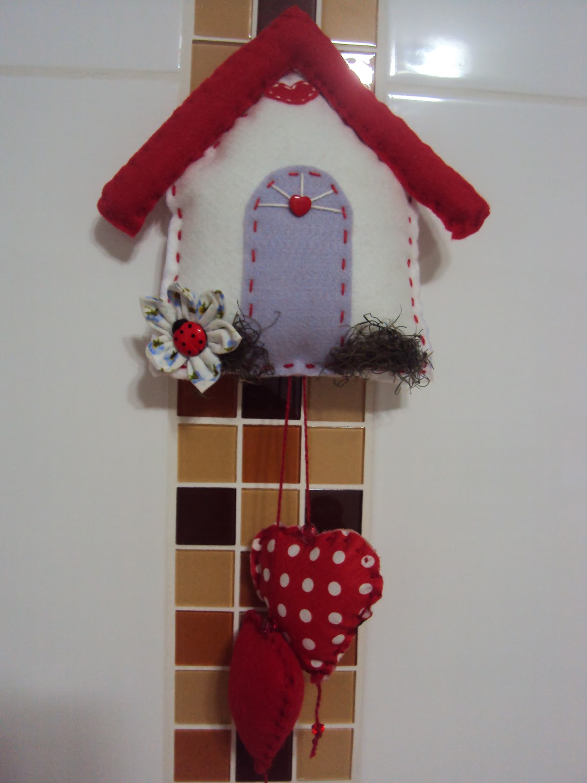 Também gosto de trabalhar com feltro, são tantas possibilidades. Ficou linda a casinha ! Lindos mimos !