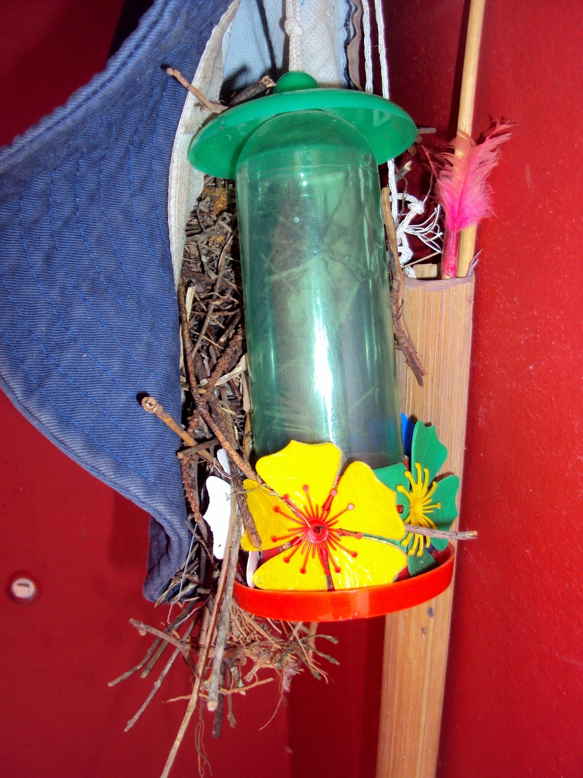 E esse ninho num chapéu...que beleza!!